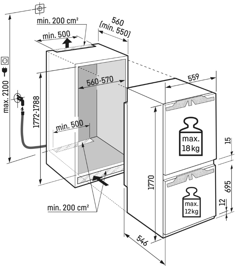 Встраиваемые двухкамерные холодильники
