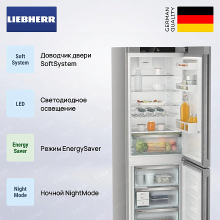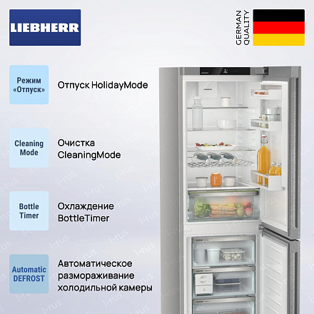 Холодильник Liebherr CNSDB 5723 из серии Plus и линейки BluPerformance, обеспечивающее идеальное хранение продуктов благодаря передовым технологиям и инновационным функциям. Стильный дизайн холодильника сделан в серебристом цвете, что придает ему современный и элегантный вид. Корпус изготовлен из стали, а двери - из нержавеющей стали, что обеспечивает долговечность и устойчивость к коррозии. Благодаря обработке SmartSteel, двери устойчивы к отпечаткам пальцев, что облегчает уход за холодильником.