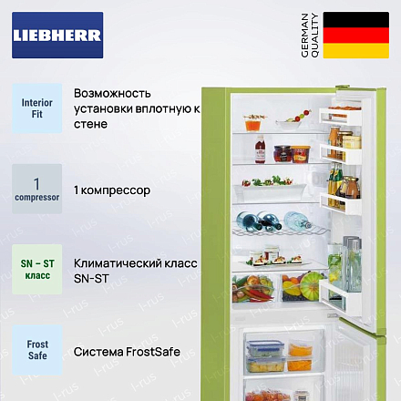 Холодильник Liebherr CUkw 2831 — это яркая, стильная и в то же время практичная двухкамерная модель, которая обеспечит высокий уровень хранения вашим продуктам. Она относится к дизайнерской линейке SwingLine, отличающейся минималистичным обликом входящих в нее изделий, четкими геометрическими формами и строгими прямыми линиями. Необычный оттенок зеленого KiwiGreen придает эксклюзивность внешнему облику, помогая создать необычный и эффектный интерьер кухни. При этом место расположения можно выбирать совершенно свободно, ведь дверцы можно перенавесить, а благодаря системе InteriorFit прибор можно устанавливать вплотную к стене.