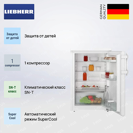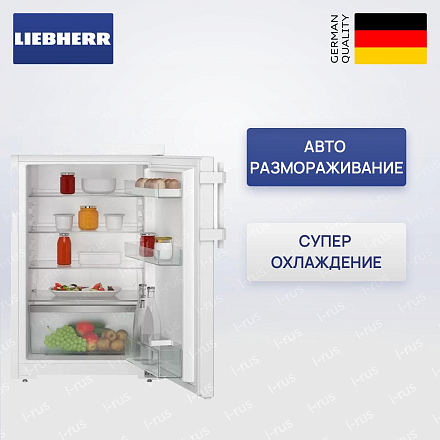 Холодильник Liebherr RE 1400 — это компактный однокамерный прибор без морозильной секции, который сочетает продуманный минимализм и практичность для кухни, офиса или небольшой гостевой зоны. Корпус и дверь выполнены из прочной стали белого цвета, что делает аппарат универсальным по стилю и простым в уходе; вертикальная ручка обеспечивает удобный захват, а возможность перевешивания дверцы и выдвижной дверной стопор DoorStop расширяют варианты установки и эксплуатации. Благодаря габаритам 85 х 55 х 60.7 см и опции встраивания под столешницу он вписывается в ограниченное пространство, при этом вентиляция через лицевую панель и регулируемые по высоте ножки спереди обеспечивают стабильную работу и удобство монтажа.