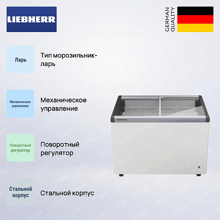Морозильный ларь Liebherr EFI 2803 оснащен сдвижной стеклянной крышкой, которая обеспечивает превосходный вид на хранящиеся продукты и способствует наглядной презентации. Крышка изготовлена из закаленного одинарного стекла и особенно устойчива к ударам.. Имеются подвесные корзины для удобного сортирования товара. Регулировка температуру осуществляется с помощью поворотного регулятора.