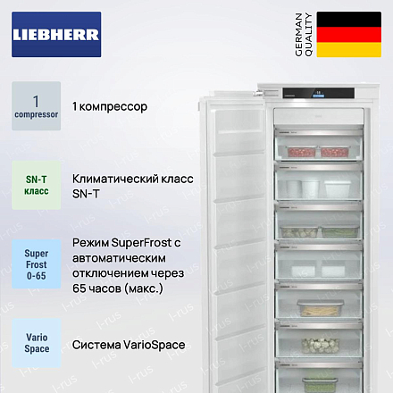Система VarioSpace позволяет размещать в морозильнике габаритные упаковки, которые не помещаются в стандартный ящик. Такой подход стал возможен благодаря различным полками и выдвижными контейнерам, встречающимся в большинстве моделей от Либхер. Каждая составляющая может выдвигаться и перемещаться, что значительно упрощает хранение продуктов нестандартной формы. Особая отделка внутренних стенок камеры на даст содержимому примёрзнуть к поверхности.