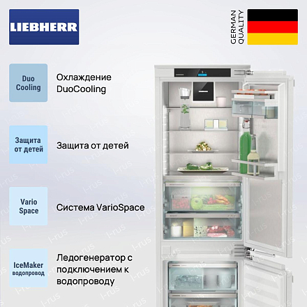 Холодильник Liebherr ICBNd 5183 Peak — встраиваемая модель с зоной свежести BioFresh, системой охлаждения NoFrost и ледогенератором.
