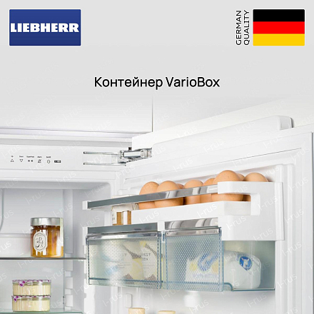 Система VarioSpace позволяет размещать в морозильнике габаритные упаковки, которые не помещаются в стандартный ящик. Такой подход стал возможен благодаря различным полками и выдвижными контейнерам, встречающимся в большинстве моделей от Либхер. Каждая составляющая может выдвигаться и перемещаться, что значительно упрощает хранение продуктов нестандартной формы. Особая отделка внутренних стенок камеры на даст содержимому примёрзнуть к поверхности.