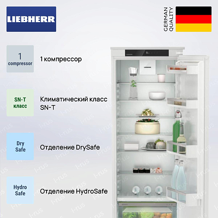 Встраиваемый холодильник Liebherr IRBSe 5120 — вместительная однокамерная модель немецкого производства, сочетающая в себе черты техники комфорт и премиум-класса. Благодаря своему расширенному функционалу, использованию современных технологий и ряду интересных решений сразу обращает на себя внимание. Расскажем в нашем обзоре об основных технических характеристиках и параметрах, особенностях модели и режимах, в которых она работает. Модель выполнена в белом цвете — это не устаревающая классика дизайна. Такое цветовое решение было и остается актуальным. Холодильник идеально будет смотреться в любой современной кухне вне зависимости от стиля.