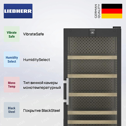 Вино требует спокойствия и стабильности для правильного хранения. В климатических винных шкафах Liebherr используются сверхтихие компрессоры , созданные по фирменным технологиям, а также деревянные полки из натурального бука , обеспечивающие устойчивость и гашение вибраций. Благодаря этим решениям ваше вино дозревает в условиях максимальной тишины и стабильности , необходимой для сохранения его вкуса и аромата.