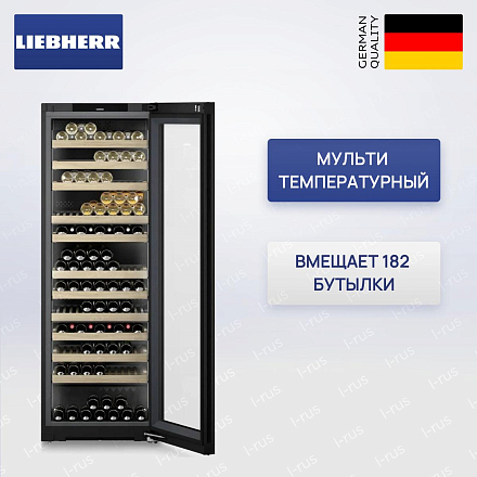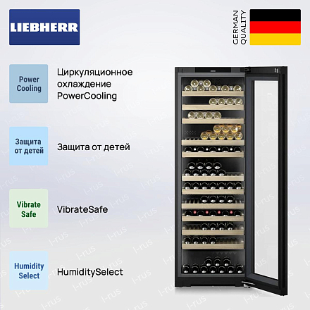 Винный шкаф Liebherr WPGbi 7473 представляет собой элегантное и технологичное решение для хранения коллекций, сочетающее строгий дизайн и продуманную внутреннюю организацию. Корпус высотой 201.3 см и габаритами 201.3 х 69.7 х 76.4 см разместит до 182 бутылок в общем объеме 658 л (полезный объем 532 л), обеспечивая аккуратное распределение продукции на 12 натуральных деревянных полках, из которых 11 оснащены телескопическими направляющими для удобной эксплуатации. Черная рамка стеклопакетной двери без выступающих ручек подчеркивает минималистичный облик, а встроенная ручка и интегрированный замок сохраняют целостность фасада; дверной упор расположен справа, имеется возможность перенавешивания, доводчик с системой SoftSystem обеспечивает плавное закрытие, а регулировка ножек помогает выставить прибор идеально по уровню.