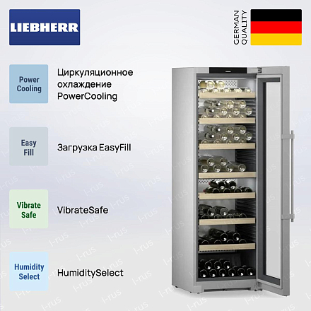 Полки для хранения в винных шкафах Либхер изготовлены из дерева. Это международный стандарт, которого придерживается фирма. У этого решения есть несколько причин. Сам материал выглядит эстетически и позволяет насладиться процессом. Кроме того, в таком оборудовании должна поддерживаться определённая влажность, чтобы пробка не рассохлась. Именно дерево лучше всего на неё реагирует. Рейки, изготовленные вручную, надёжно удерживают бутылки и снижают вибрацию.