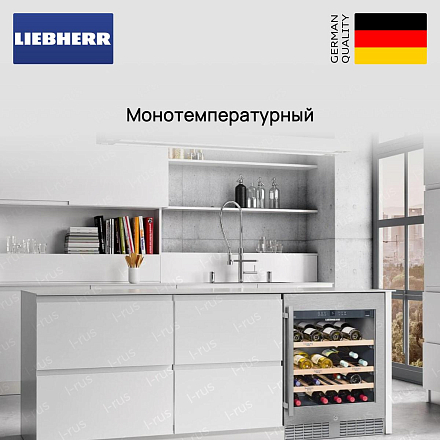 Полки для хранения в винных шкафах Либхер изготовлены из дерева. Это международный стандарт, которого придерживается фирма. У этого решения есть несколько причин. Сам материал выглядит эстетически и позволяет насладиться процессом. Кроме того, в таком оборудовании должна поддерживаться определённая влажность, чтобы пробка не рассохлась. Именно дерево лучше всего на неё реагирует. Рейки, изготовленные вручную, надёжно удерживают бутылки и снижают вибрацию.