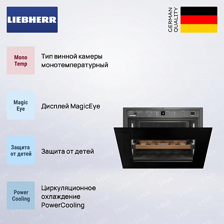 Встраиваемый винный шкаф Liebherr WKEgb 582 выполнен в черном цвете, удачно подчеркивающим современность и элегантность модели. Конструкция небольшого размера, сравнимая по габаритам с компактным духовым шкафом гармонично сочетается с остальной техникой на кухне или в общей комнате. Премиальное качество и идеальные условия хранения ставят данный прибор в ряд лучших изделий для домашних винотек.