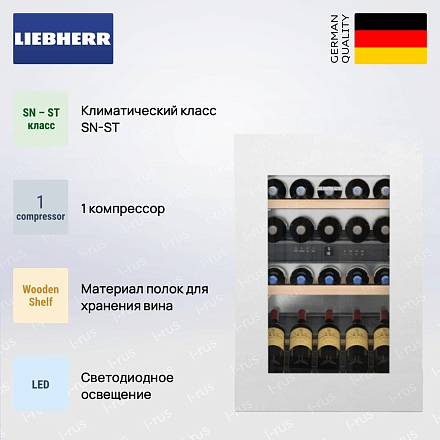 Встраиваемый винный шкаф Liebherr EWTgw 1683 Vinidor — это мультитемпературная модель, созданная для истинных ценителей благородного напитка. Он вмещает 33 бутылки, идеально подходит для любителей вина и профессиональных сомелье. Ключевым преимуществом этого прибора является разделение на две отдельные зоны, где можно настроить разные температурные режимы в рамках от +5°C до +20°C. Это дает возможность хранить внутри одного шкафа белые и красные вина, требующие разных условий содержания.