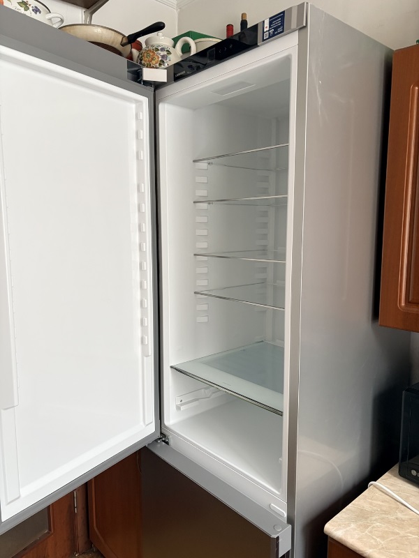 Купила этот холодильник несколько месяцев назад и использую каждый день. Сначала выбрала его из-за аккуратного внешнего вида и встроенной ручки — на кухне он смотрится просто и не кричит о себе. Первое утро меня порадовал тихий компрессор: не мешает разговору и не отвлекает, когда дома гости. Сенсорный дисплей удобен: настройки видны, режим SuperFrost включается быстро, и морозильник за ночь справился с урожаем с дачи — ягоды замёрзли ровно и отдельно от овощей.